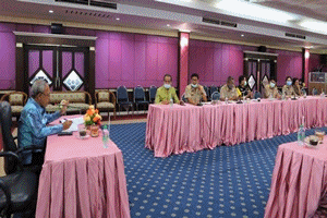 นายชาคร ไอยศูรย์ ปลัดเทศบาล พร้อมด้วย หัวหน้าส่วนราชการ ร่วมประชุมการติดตามตรวจราชการสำนักงานเทศบาลนครนครศรีธรรมราช |