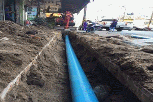 เทศบาลนครนครศรีธรรมราช ดำเนินการวางท่อเมนประปา (ท่อเมนรอง) ชนิด PVC ขนาดเส้นผ่าศูนย์กลาง 4 นิ้ว บริเวณจากสามแยกท่าด่าน ถนนท่าโพธิ์ ถึง คอสะพานหน้าเมืองหลังจวนผู้ว่า ถ.ศรีปราชญ์ พร้อมประสานเข้ามาตรวัดน้ำ ตำบลท่าวัง และตำบลคลัง อำเภอเมือง จังหวัดนครศรีธรรมราช |
