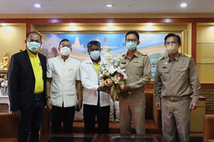 ดร.กณพ เกตุชาติ นายกเทศมนตรีนครนครศรีธรรมราช รับมอบกระเช้าแสดงความยินดี เนื่องในโอกาสที่ได้รับตำแหน่งผู้บริหารของเทศบาลนครนครศรีธรรมราช |