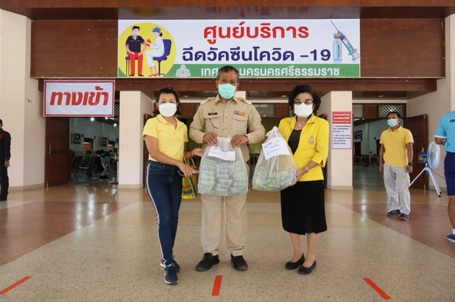 นายสมคิด รักสนิท หัวหน้าฝ่ายบริหารงานทั่วไป โรงพยาบาลเทศบาลนครนครศรีธรรมราช เป็นตัวแทนรับมอบ อาหารว่าง สนับสนุนจากครอบครัว อุทยานนวาระ |