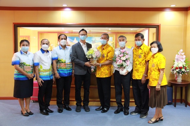 นายสง่า นาวารัตน์ ผู้อำนวยการโรงเรียนกัลยาณีศรีธรรมราช ร่วมแสดงความยินดี แก่ ดร.กณพ เกตุชาติ นายกเทศมนตรีนครนครศรีธรรมราช ในโอกาสรับตำแหน่งใหม่ |