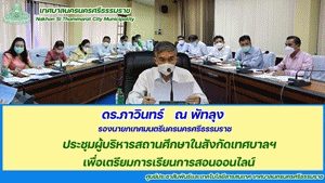 วันอังคาร ที่ 20 กรกฎาคม 2564 เวลา 10.30 น. ณ ห้องประชุมชั้น 2 สำนักงานเทศบาลนครนครศรีธรรมราช นายภาวินทร์ ณ พัทลุง รองนายกเทศมนตรีนครนครศรีธรรมราช เป็นประธานการประชุมผู้อำนวยการสถานศึกษาโรงเรียนในสังกัดเทศบาลนครนครศรีธรรมราช เพื่อเตรียมความพร้อมในการสอนออนไลน์ให้แก่นักเรียนในสถานการณ์การแพร่ระบาดของโรคติดเชื้อไวรัสโคโรนา 2019 (COVID-19) ทั้งนี้เพื่อควบคุมป้องกัน การแพร่ระบาดของของโรคติดเชื้อไวรัสโคโรนา 2019 (COVID-19)