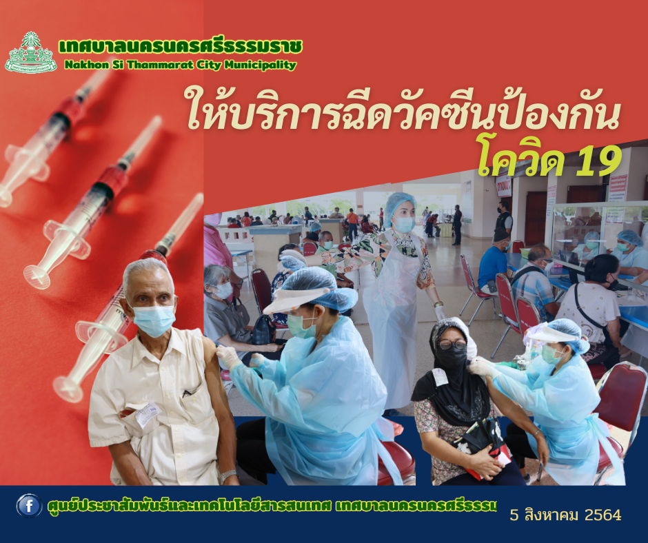 เทศบาลนครนครศรีธรรมราช ดำเนินการฉีดวัคซีนป้องกันโรคโควิด-19 สำหรับวันนี้ผู้มีนัดฉีดวัคซีนในวันที่ 9 -30 กรกฎาคม 2564 |