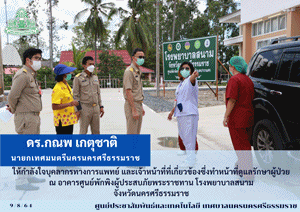 นายกเทศมนตรีนครนครศรีธรรมราช ลงพื้นที่ให้กำลังใจบุคลากรทางการแพทย์ และเจ้าหน้าที่ที่เกี่ยวข้องซึ่งทำหน้าที่ดูแลรักษาผู้ป่วย ณ อาคารศูนย์พักพิงผู้ประสบภัยพระราชทาน |