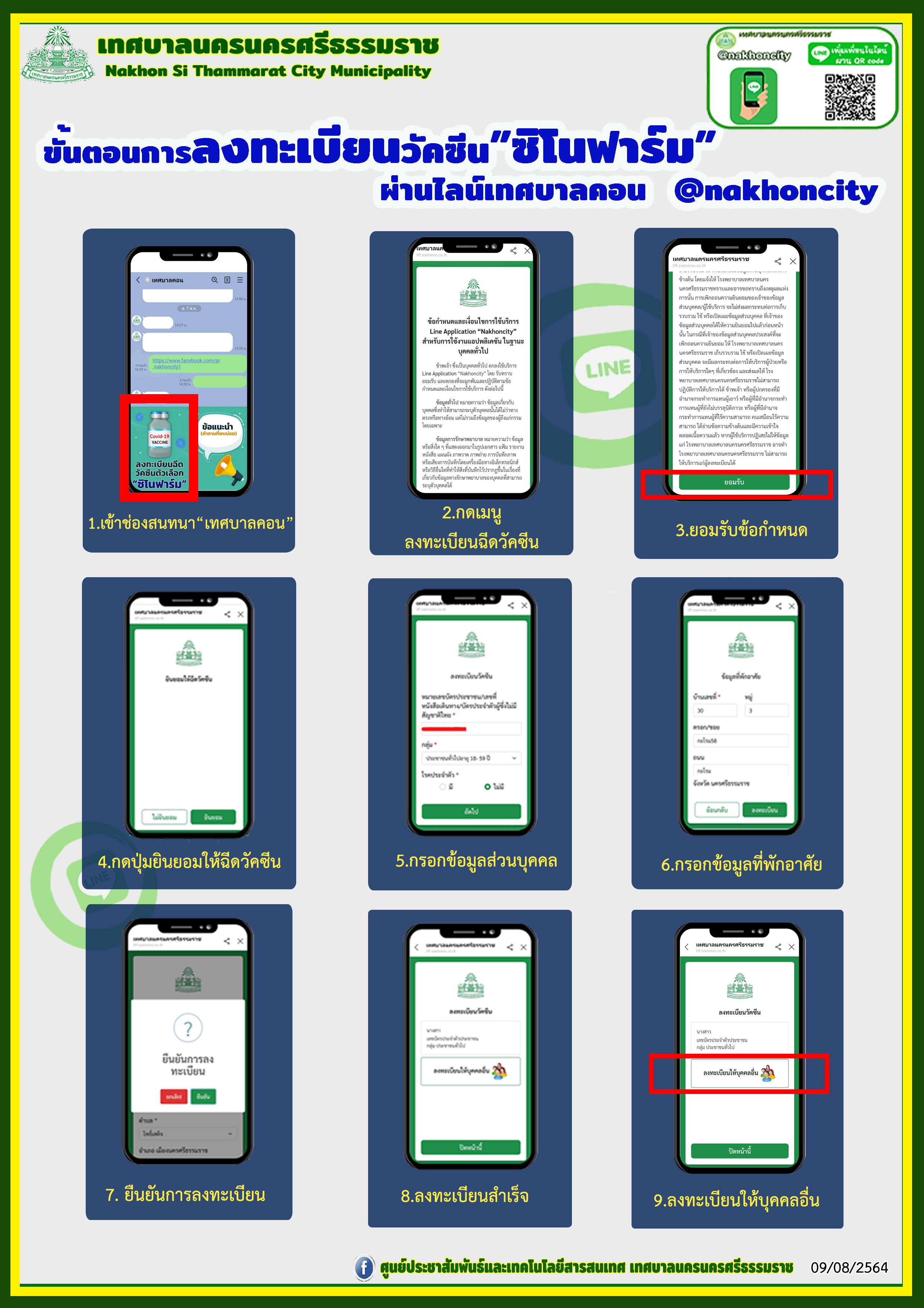 เทศบาลนครนครศรีธรรมราช เปิดให้ลงทะเบียนวัคซีนตัวเลือก "ซิโนฟาร์ม" |