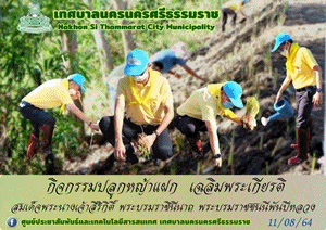 ดร.กณพ เกตุชาติ นายกเทศมนตรีนครนครศรีธรรมราช พร้อมด้วยผู้บริหาร หัวหน้าส่วนราชการ พนักงานและลูกจ้างสำนักช่าง ร่วมปลูกหญ้าแฝก เนื่องในโอกาสวันเฉลิมพระชนมพรรษาสมเด็จพระนางเจ้าสิริกิติ์ พระบรมราชินีนาถ พระบรมราชชนนีพันปีหลวง |