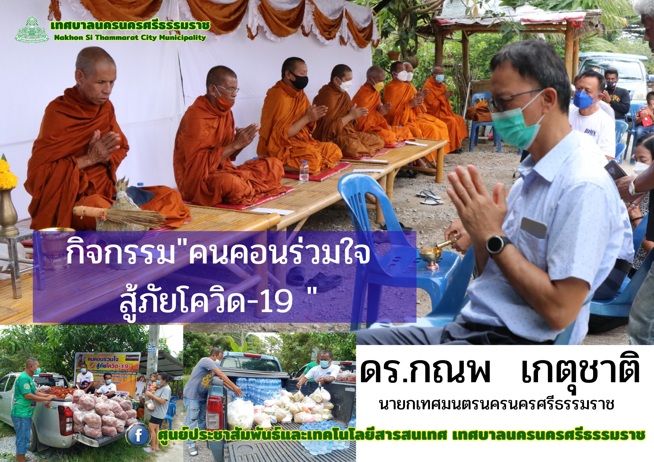 ดร.กณพ เกตุชาตินายกเทศมนตรีนครนครศรีธรรมราช เปิดกิจกรรม "คนคอนร่วมใจ สู้ภัยโควิด-19 " |