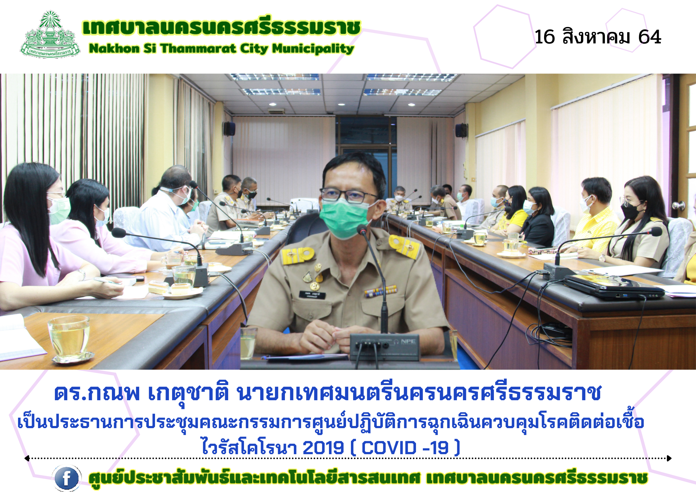 ดร.กณพ เกตุชาติ นายกเทศมนตรีนครนครศรีธรรมราช เป็นประธานการประชุมคณะกรรมการศูนย์ปฏิบัติการฉุกเฉินควบคุมโรคติดต่อเชื้อไวรัสโคโรนา 2019 ( COVID -19 ) |
