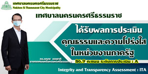 เทศบาลนครนครศรีธรรมราช ได้รับผลการประเมินคุณธรรมและความโปร่งใสในหน่วยงานภาครัฐ Integrity and Transparency Assessment : ITA |