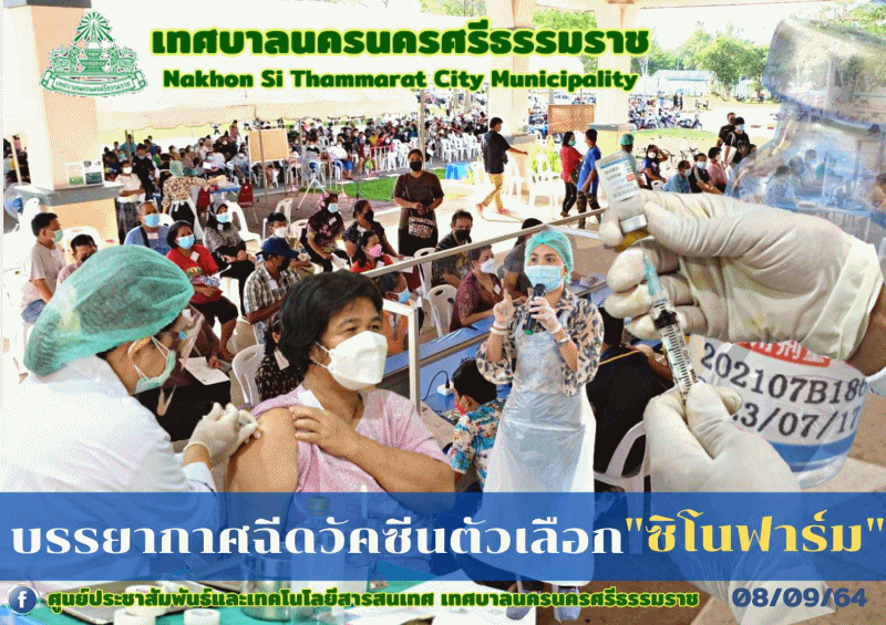 เทศบาลนครนครศรีธรรมราช ให้บริการฉีดวัคซีนตัวเลือก “ซิโนฟาร์ม” |
