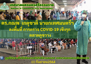 วันเสาร์ที่ 11 กันยายน พ.ศ. 2564 ณ ตลาดสดเทศบาลนครนครศรีธรรมราช (ตลาดคูขวาง) เวลา 06.00 น ดร.กณพ เกตุชาติ นายกเทศมนตรีนครนครศรีธรรมราช ลงพื้นที่ตลาดสดเทศบาลนครนครศรีธรรมราช (ตลาดคูขวาง) เพื่อตรวจหาโรคติดเชื้อไวรัสโคโรนา 2019 ตามรายงานของ สำนักงานสาธารณสุขจังหวัดนครศรีธรรมราช ซึ่งพบ ผู้ติดเชื้อภายในตลาดสดเทศบาลนครนครศรีธรรมราช ทั้งนี้ เพื่อควบคุมการแพร่ระบาดของเชื้อไวรัสโคโรนา 2019 เทศบาลนครนครศรีธรรมราช มีความจำเป็นต้อง ปิดตลาดสดเทศบาลนครนครศรีธรรมราช (ตลาดคูขวาง) และห้ามจำหน่ายสินค้าบริเวณทางเท้าด้านหน้าตลาดเป็นการชั่วคราว และจะลงพื้นที่ฉีดล้างทำความสะอาดและฉีดยาฆ่าเชื้อภายในตลาดสดและบริเวณโดยรอบเพื่อป้องกันการแพร่ระบาดของโรคติดเชื้อไวรัสโคโรนา 2019 ในวันวันอาทิตย์ ที่ 12 กันยายน พ.ศ.2564 และจะเปิดให้บริการในวันจันทร์ ที่13 กันยายน 2564
