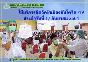 เทศบาลนครนครศรีธรรมราช ให้บริการฉีดวัคซีนป้องกันโรคโควิด-19 สำหรับผู้ลงทะเบียนไว้แล้ว |