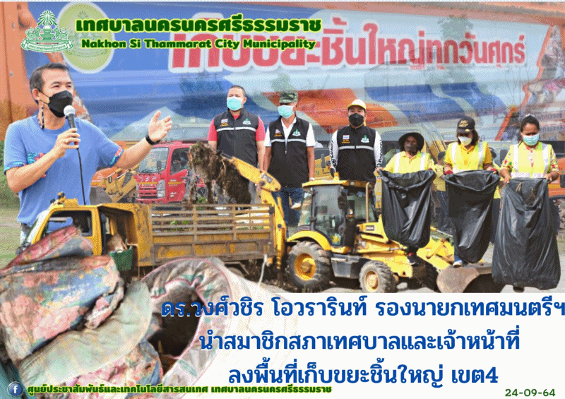 ดร.วงศ์วชิร โอวรารินท์ รองนายกเทศมนตรีนครนครศรีธรรมราช นำสมาชิกสภาเทศบาลและเจ้าหน้าที่ ลงพื้นที่เก็บขยะชิ้นใหญ่ เขต 4 |