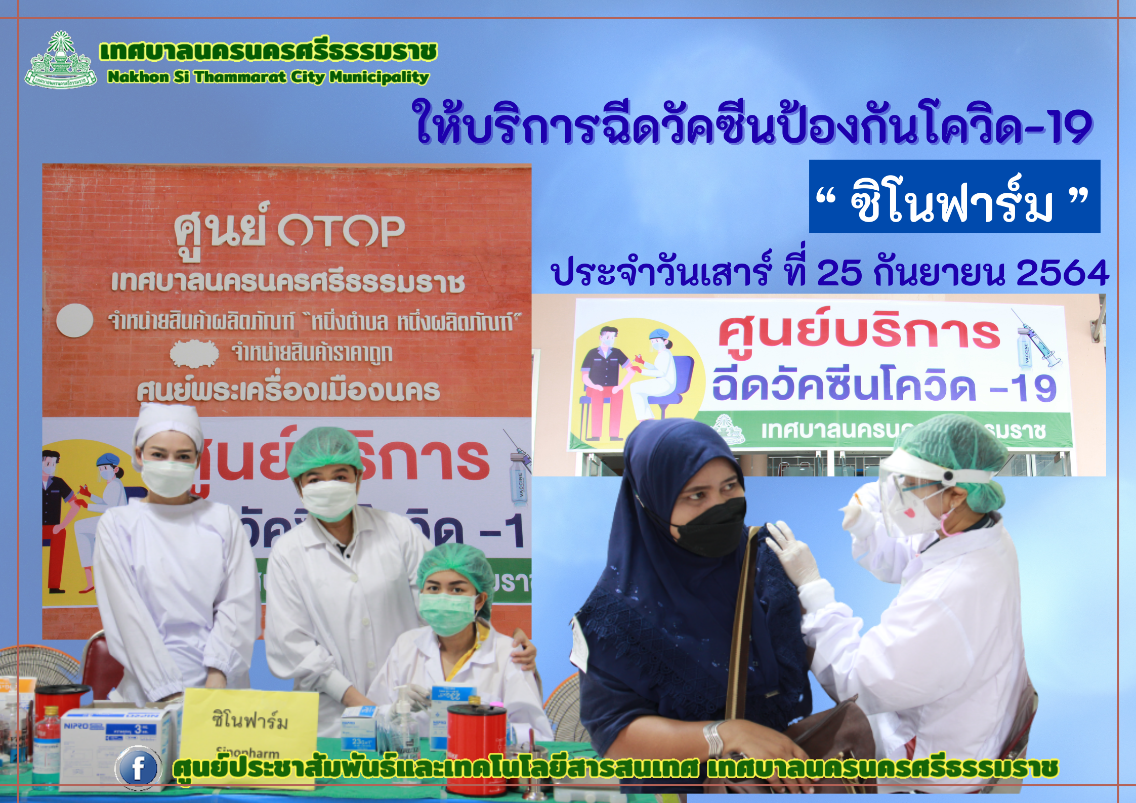 เทศบาลนครนครศรีธรรมราช ให้บริการฉีดวัคซีนป้องกันโรคโควิด-19 สำหรับผู้ฉีดวัคซีนตัวเลือก“ซิโนฟาร์ม ” |