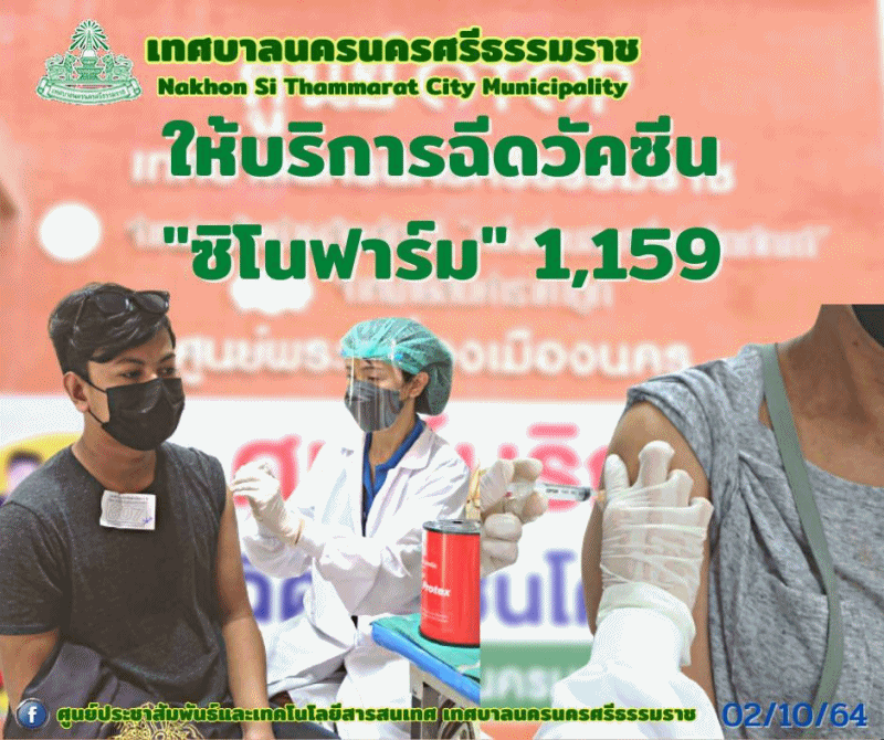 เทศบาลนครนครศรีธรรมราช ให้บริการฉีดวัคซีนตัวเลือก “ซิโนฟาร์ม” เข็มที่1 และเข็มที่2 |