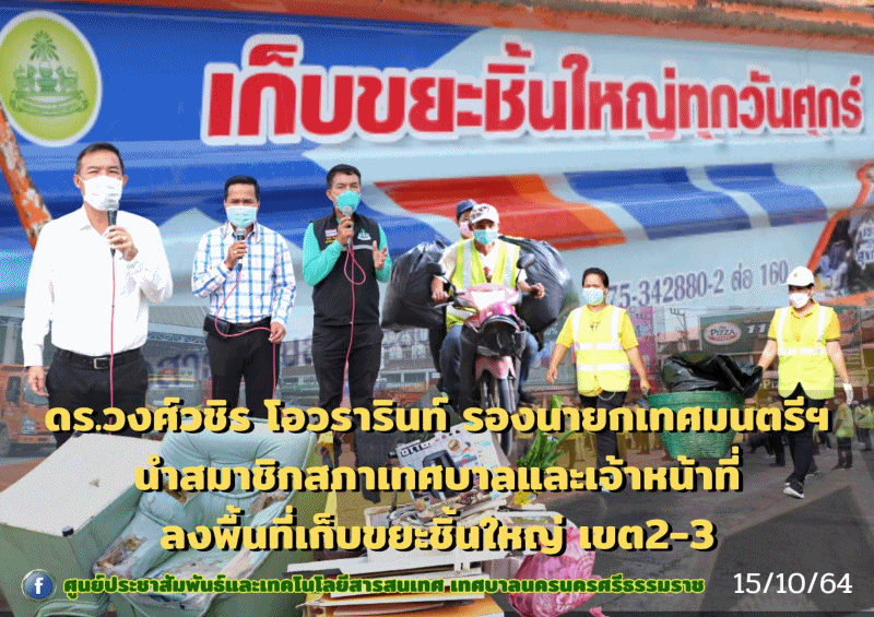 วันศุกร์ ที่ 15 ตุลาคม 2564 เวลา 08.00-11.00 น. ดร.วงศ์วชิร โอวรารินท์ รองนายกเทศมนตรีนครนครศรีธรรมราช |