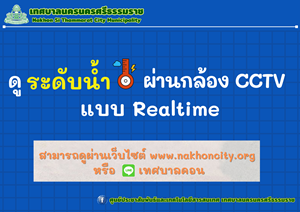 เทศบาลนครนครศรีธรรมราช โดยศูนย์เทคโนโลยีสารสนเทศ ICT & CCTV กองยุทธศาสตร์และงบประมาณจัดทำลิงค์เว็บไซต์ดูระดับน้ำผ่านกล้องโทรทัศน์วงจรปิด(CCTV) แบบเรียลไทม์ (Realtime) |