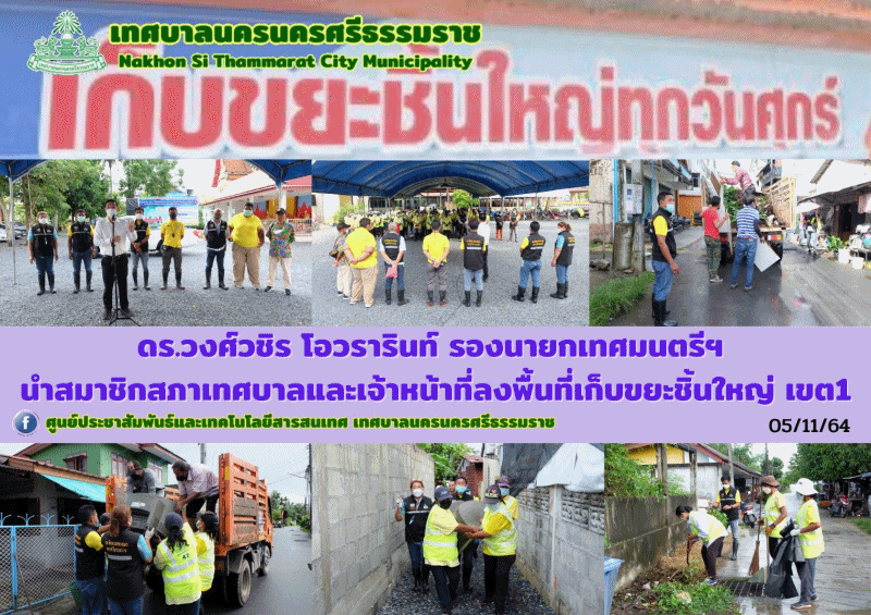 ดร.วงศ์วชิร โอวรารินท์ รองนายกเทศมนตรีนครนครศรีธรรมราช นำสมาชิกสภาเทศบาล เขต1 และเจ้าหน้าที่กองสาธารณสุขและสิ่งแวดล้อม ลงพื้นที่เก็บขยะชิ้นใหญ่ เขต 1 |