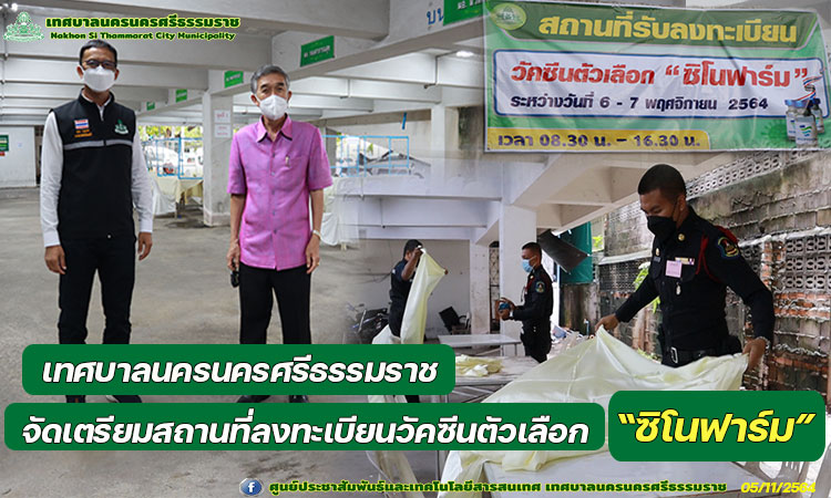 เทศบาลนครนครศรีธรรมราช จัดเตรียมสถานที่ลงทะเบียนวัคซีนตัวเลือก "ซิโนฟาร์ม" |