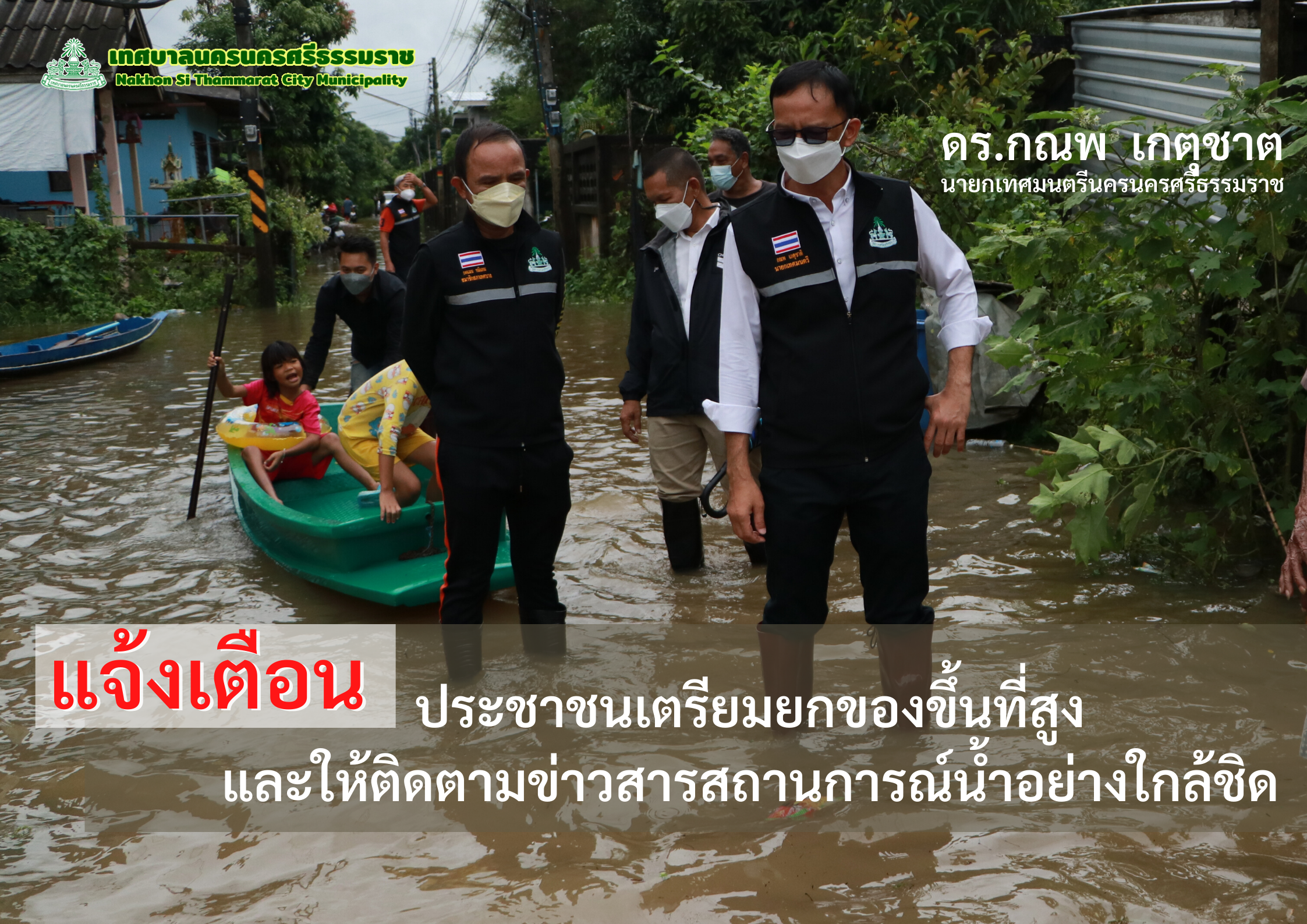 วันพฤหัสบดีที่ 11 พฤศจิกายน พ.ศ. 2564 เวลา 10.00 น. ณ ชุมชนบ่อทรัพย์ ดร.กณพ เกตุชาติ นายกเทศมนตรีนครนครศรีธรรมราช พร้อมด้วย สมาชิกสภาเทศบาลนครนครศรีธรรมราช ลงพื้นที่ ชุมชนบ่อทรัพย์ เพื่อติดตามระดับน้ำ เนื่องจากเป็นพื้นที่ลุ่มต่ำ ทำให้น้ำเข้าเอ่อท่วมถนนภายในชุมชน ทั้งนี้ จากสถานการณ์ฝนตกอย่างต่อเนื่อง เทศบาลนครนครศรีธรรมราช ได้ประกาศเฝ้าระวังน้ำท่วมในพื้นที่ซึ่งมีระดับน้ำ เพิ่มขึ้นอย่างต่อเนื่อง จึงได้ใช้สัญลักษณ์ธงสีเหลือง ซึ่งหมายถึง ระดับน้ำต่ำกว่าตลิ่ง น้อยกว่า 1.50 เมตร เพื่อแจ้งเตือนประชาชนเตรียมยกของขึ้นที่สูง และให้ติดตามข่าวสารสถานการณ์น้ำอย่างใกล้ชิด หากประชาชนท่านใดต้องการความช่วยเหลือ สามารถติดต่อขอรับการช่วยเหลือได้ที่ ฝ่ายป้องกันและบรรเทาสาธารณภัย 075-348118 , 075-342880 ต่อ 138 หรือสายด่วน 199 ตลอด 24 ชั่วโมง |