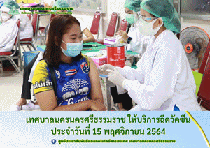 เทศบาลนครนครศรีธรรมราช ให้บริการฉีดวัคซีนป้องกันโรคโควิด-19 ประจำวันจันทร์ ที่ 15 พฤศจิกายน 2564 |