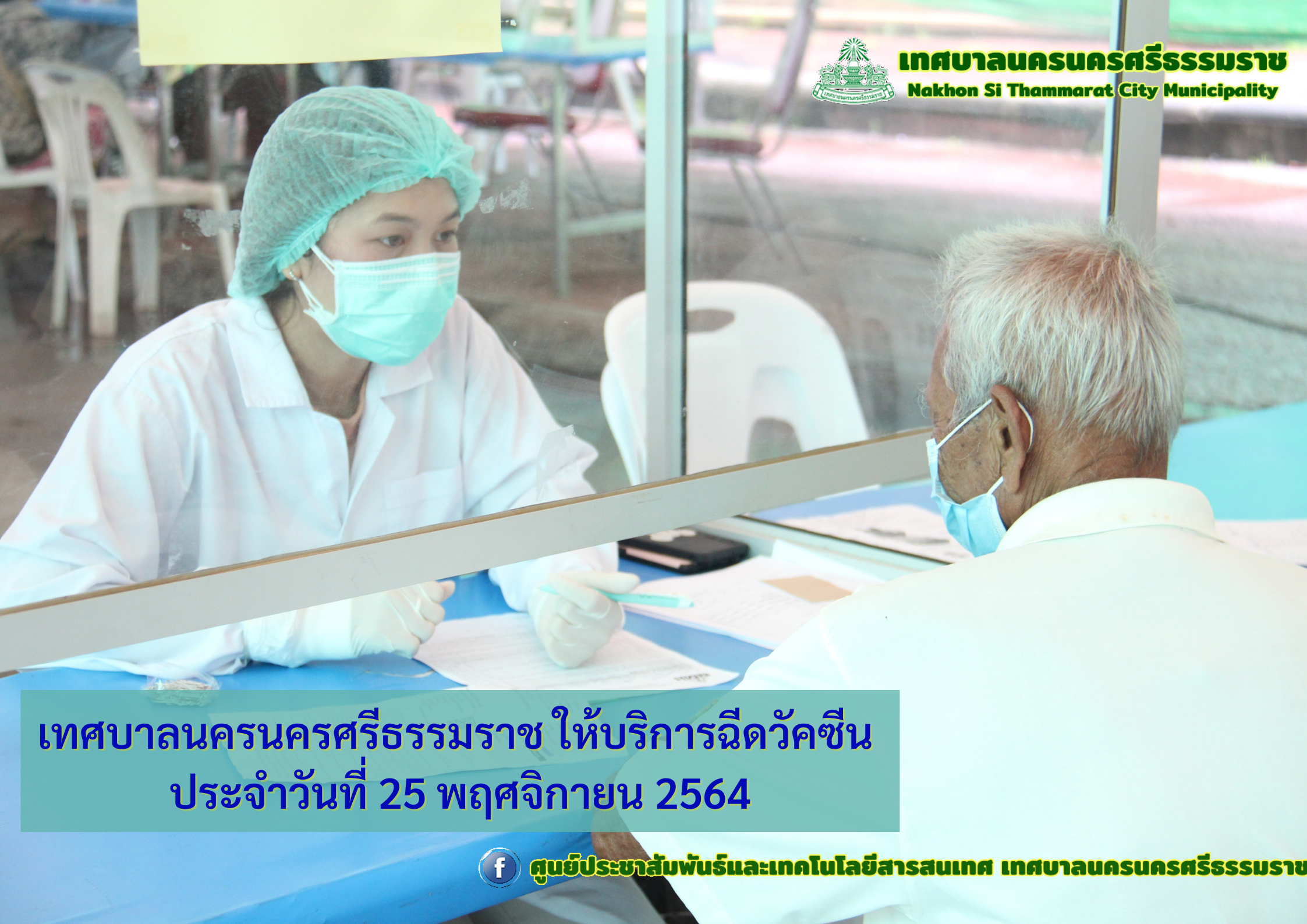 เทศบาลนครนครศรีธรรมราช ให้บริการฉีดวัคซีนป้องกันโรคโควิด-19 ประจำวันพฤหัสบดี ที่ 25 พฤศจิกายน 2564 |