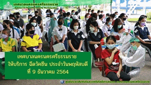 เทศบาลนครนครศรีธรรมราช ให้บริการฉีดวัคซีนป้องกันโรคโควิด-19 ประจำวันวันพฤหัสบดีที่ 9 ธันวาคม พ.ศ. 2564 |