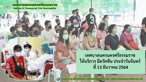 เทศบาลนครนครศรีธรรมราช ให้บริการฉีดวัคซีนป้องกันโรคโควิด-19 ประจำวันจันทร์ ที่ 13 ธันวาคม 2564 |