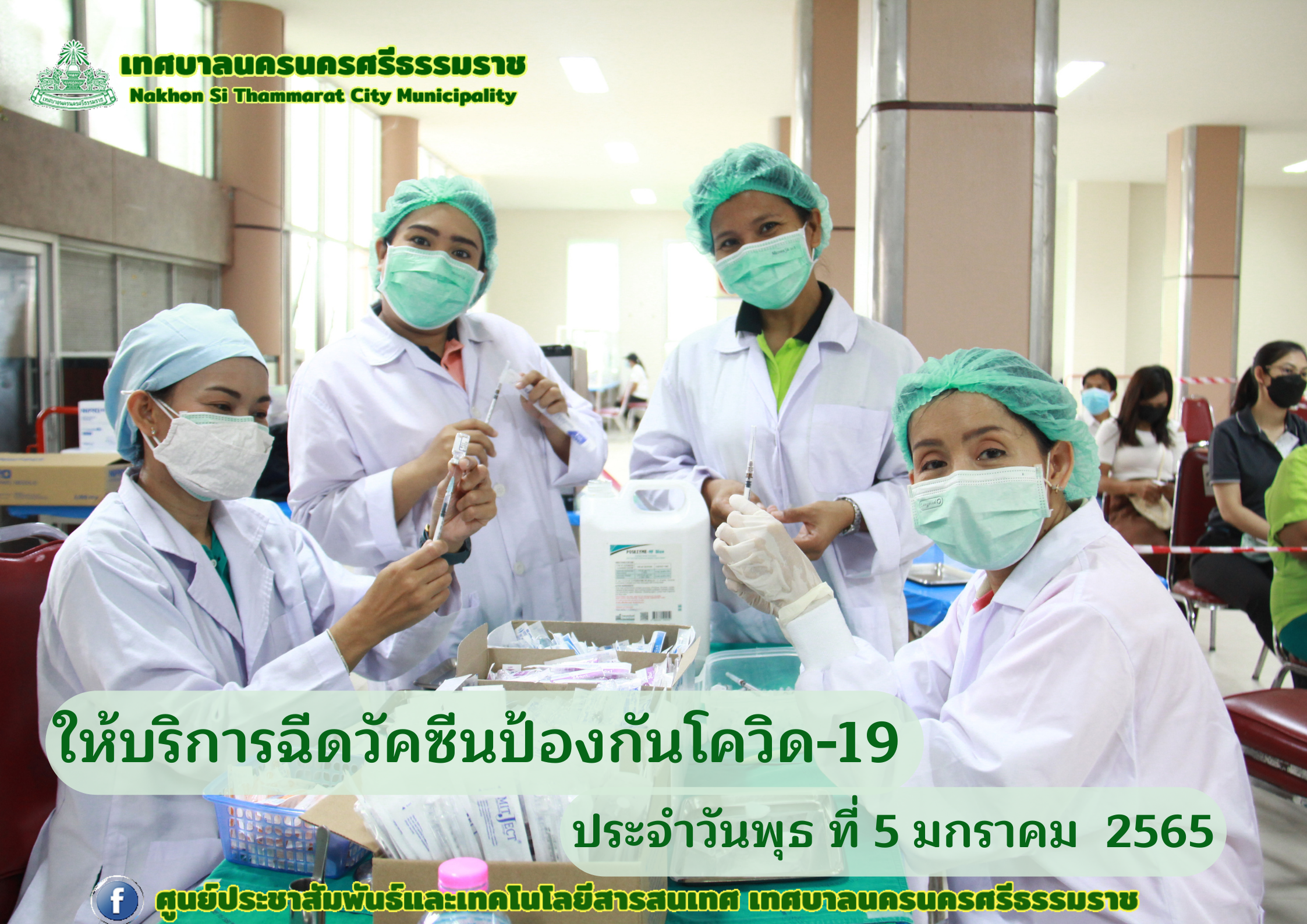 เทศบาลนครนครศรีธรรมราช ให้บริการฉีดวัคซีนป้องกันโรคโควิด-19 ประจำวันพุธ ที่ 5 มกราคม 2565 |