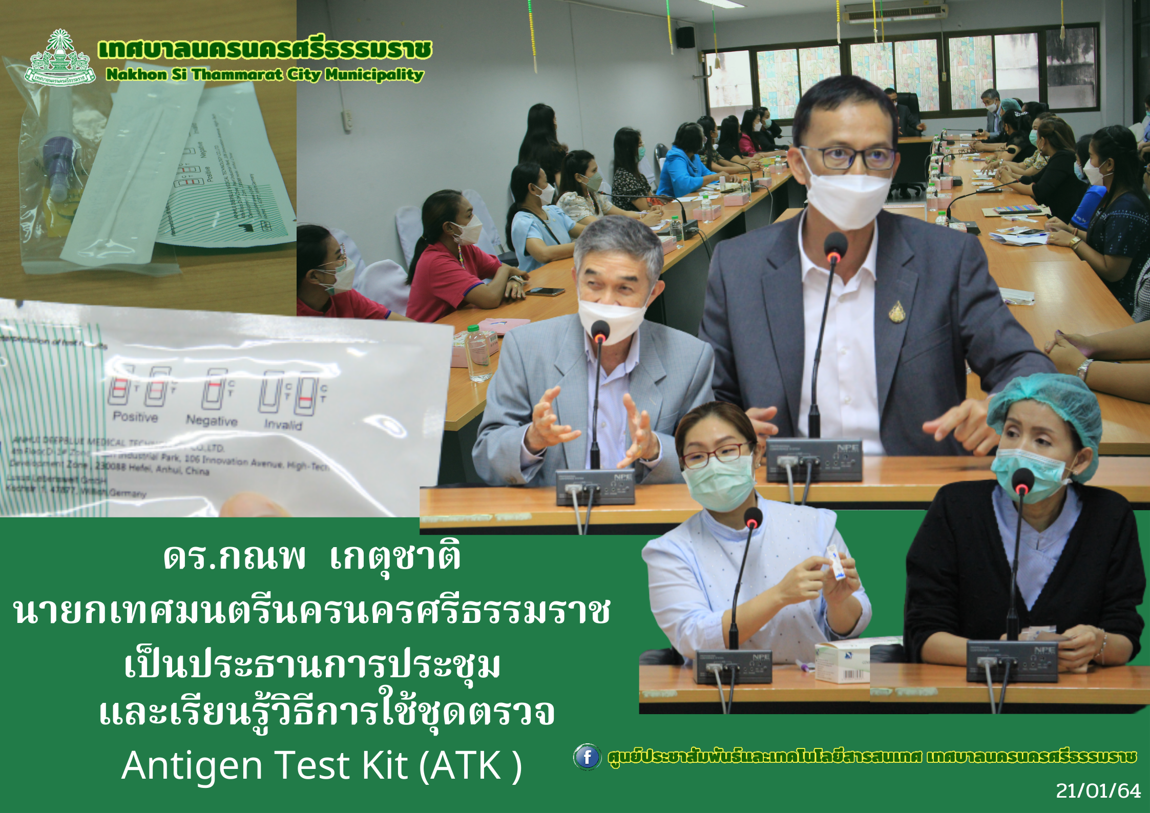 ดร.กณพ เกตุชาติ นายกเทศมนตรีนครนครศรีธรรมราช เป็นประธานการประชุม และเรียนรู้วิธีการใช้ชุดตรวจ Antigen Test Kit (ATK ) |