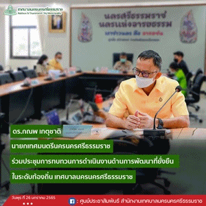วันพุธ ที่ 26 มกราคม 2565 เวลา 13.30 น. ณ ห้องประชุมศูนย์ปฎิบัติการชั้น 4 ศาลากลางจังหวัดนครศรีธรรมราช ดร.กณพ เกตุชาติ นายกเทศมนตรีนครนครศรีธรรมราช เข้าร่วมการประชุมเพื่อส่งเสริมการบูรณาการการดำเนินงานการพัฒนาที่ยั่งยืนในระดับท้องถิ่น เทศบาลนครนครศรีธรรมราช เพื่อให้เกิดการปรึกษาหารือกันระหว่างหน่วยงานระดับประเทศ ภูมิภาค และท้องถิ่น เพื่อหารือเกี่ยวกับความก้าวหน้าของท้องถิ่นในการบรรลุเป้าหมายการพัฒนา ที่ยั่งยืน ของเทศบาลนครนครศรีธรรมราช โดยมี นายสนั่น สนธิเมือง รองผู้ว่าราชการจังหวัด เป็นประธานในการประชุม