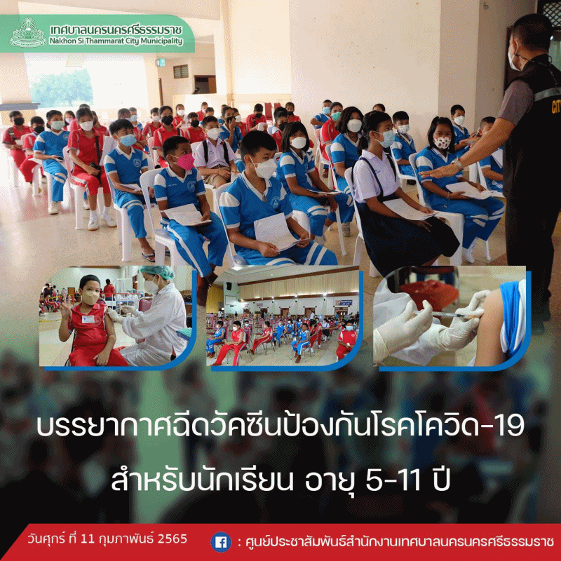 เทศบาลนครนครศรีธรรมราช ให้บริการฉีดวัคซีนป้องกันโรคโควิด-19 สำหรับนักเรียน อายุ 5-11 ปี |