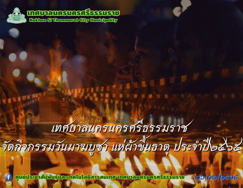 ดร.กณพ เกตุชาติ นายกเทศมนตรีนครนครศรีธรรมราช เป็นประธานกิจกรรมวันมาฆบูชา แห่ผ้าขึ้นธาตุ ประจำปี ๒๕๖๕ |