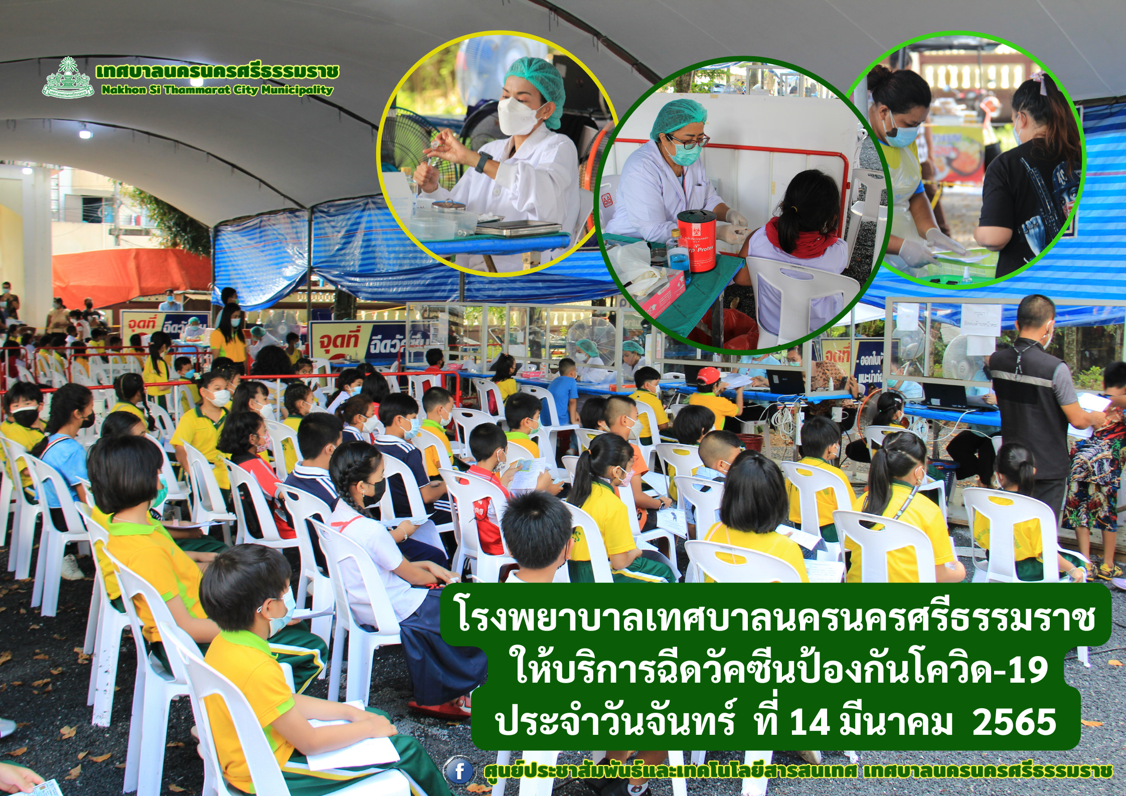 โรงพยาบาลเทศบาลนครนครศรีธรรมราช ให้บริการฉีดวัคซีนป้องกันโควิด-19 สำหรับนักเรียน อายุ 5-11 ปี ประจำวันจันทร์ ที่ 14 มีนาคม 2565 |