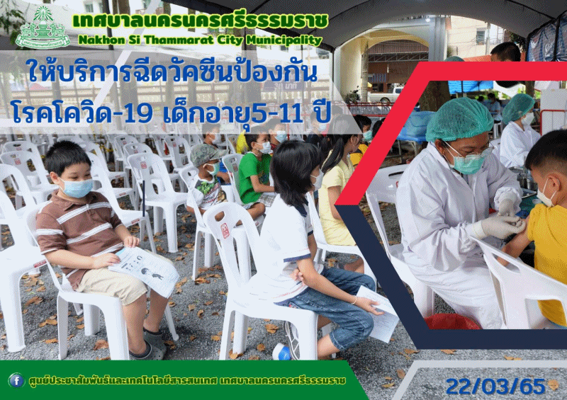 เทศบาลนครนครศรีธรรมราช ให้บริการฉีดวัคซีนป้องกันโรคโควิด-19 สำหรับนักเรียน อายุ 5-11 ปี |