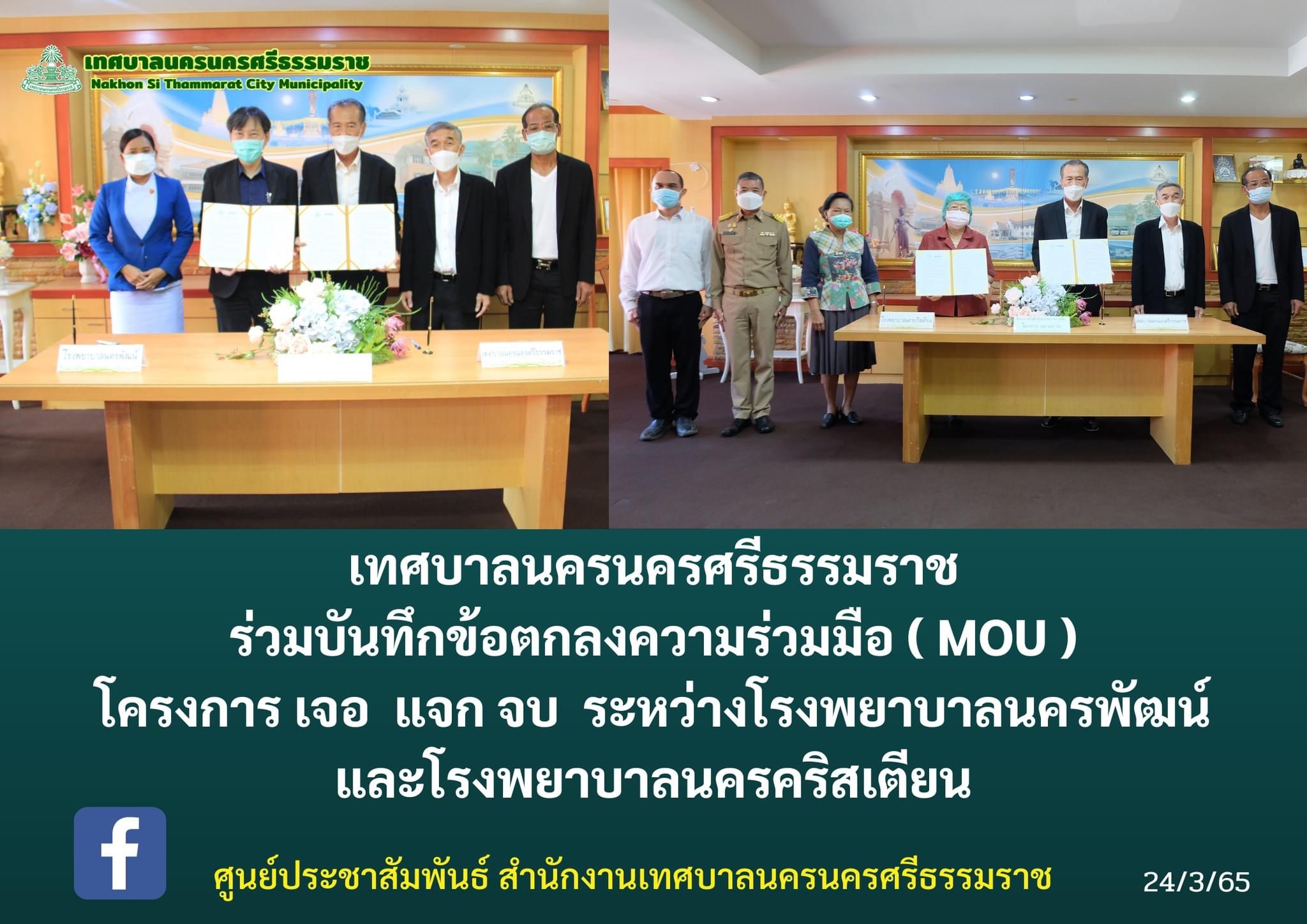 เทศบาลนครนครศรีธรรมราช ดำเนินการร่วมบันทึกข้อตกลงความร่วมมือ ( MOU )โครงการ เจอ แจก จบ ระหว่างโรงพยาบาลนครพัฒน์ และโรงพยาบาลนครคริสเตียน |