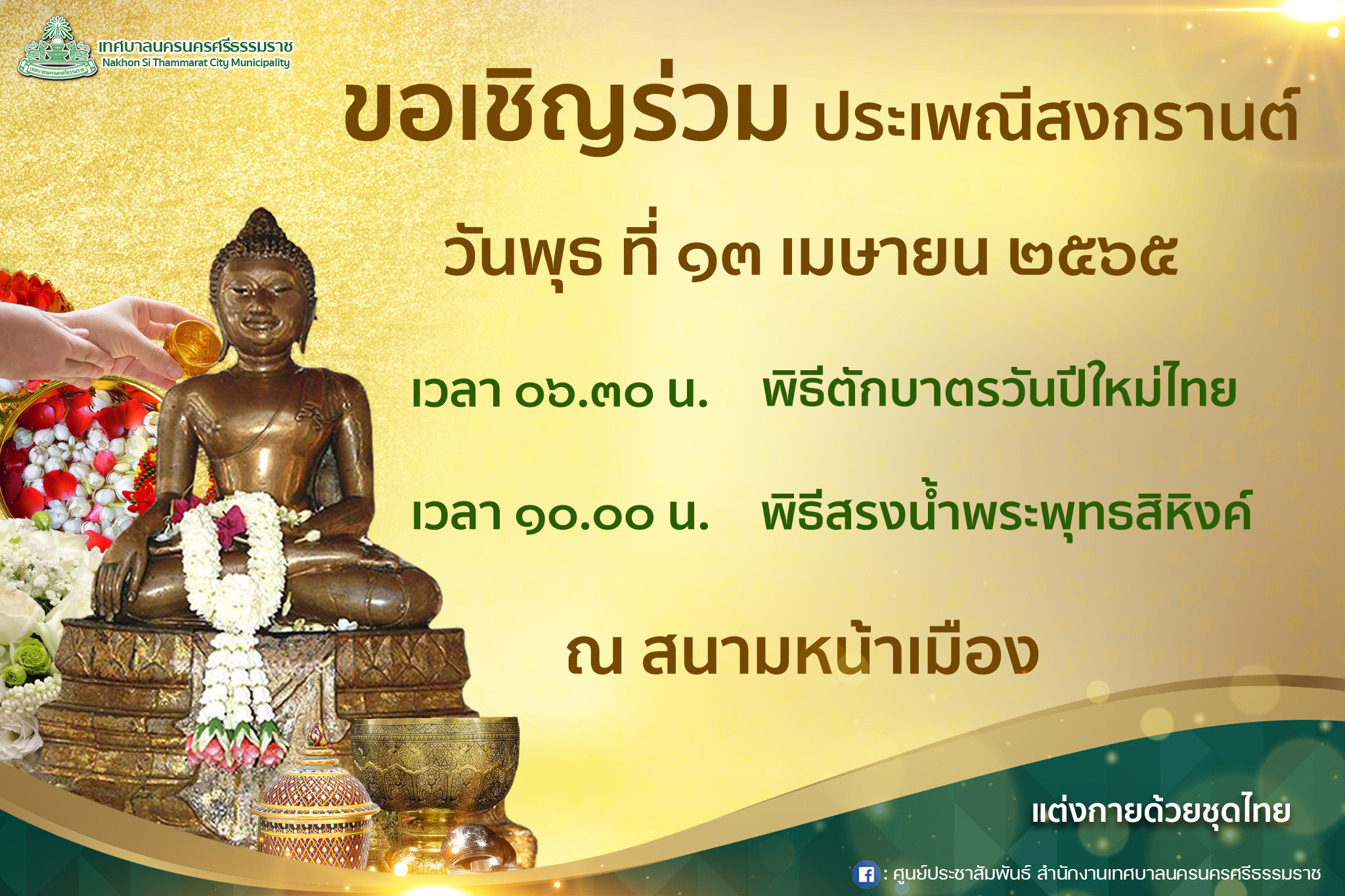 เทศบาลนครนครศรีธรรมราช ขอเชิญประชาชนร่วมประเพณีสงกรานต์ ประจำปี ๒๕๖๕ |