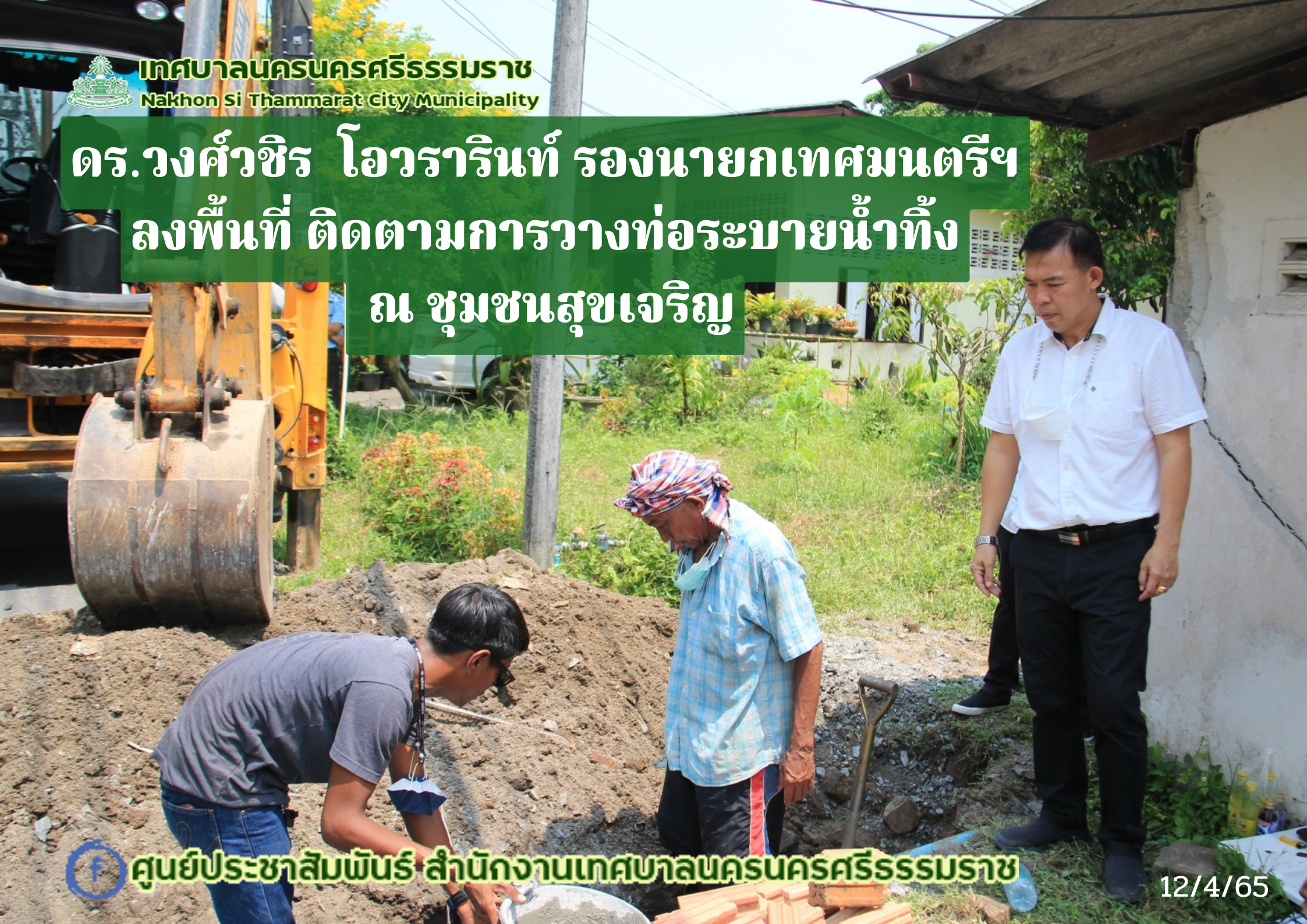ดร.วงศ์วชิร โอวรารินท์ รองนายกเทศมนตรีนครนครศรีธรรมราช พร้อมด้วยสมาชิกสภาเทศบาลนครนครศรีธรรมราช เขต 4 ลงพื้นที่ ติดตามการวางท่อระบายน้ำทิ้ง ณ ชุมชนสุขเจริญ |