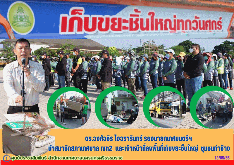 ดร.วงศ์วชิร โอวรารินท์ รองนายกเทศมนตรีนครนครศรีธรรมราช นำสมาชิกสภาเทศบาล เขต 2 และเจ้าหน้าที่กองสาธารณสุขและสิ่งแวดล้อม ลงพื้นที่เก็บขยะชิ้นใหญ่ ชุมชนท่าช้าง |