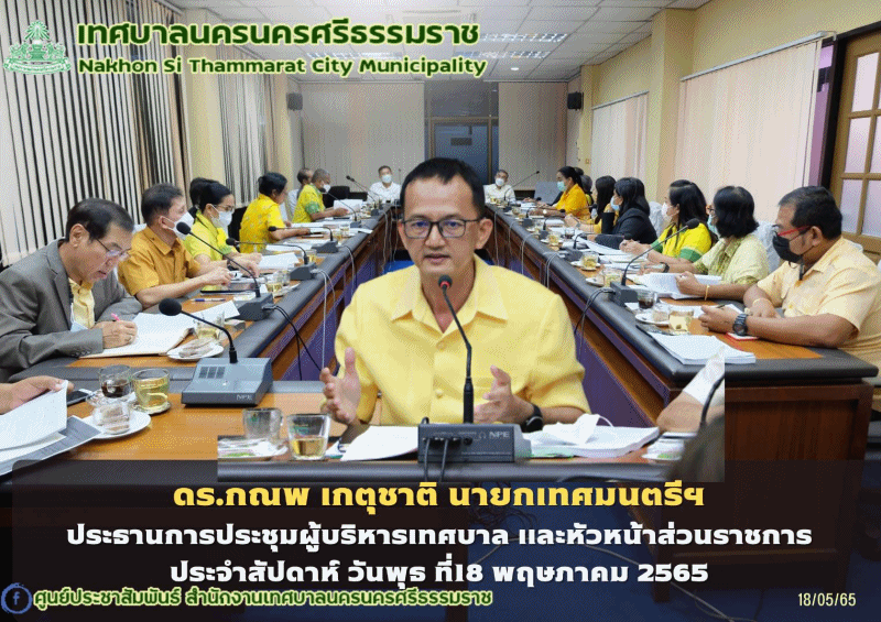 ดร.กณพ เกตุชาติ นายกเทศมนตรีนครนครศรีธรรมราช ประชุมผู้บริหารเทศบาล และหัวหน้าส่วนราชการ ประจำสัปดาห์ |