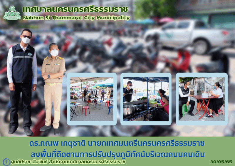 ดร.กณพ เกตุชาติ นายกเทศมนตรีนครนครศรีธรรมราช ลงพื้นที่ติดตามการปรับปรุงภูมิทัศน์บริเวณถนนคนเดิน |