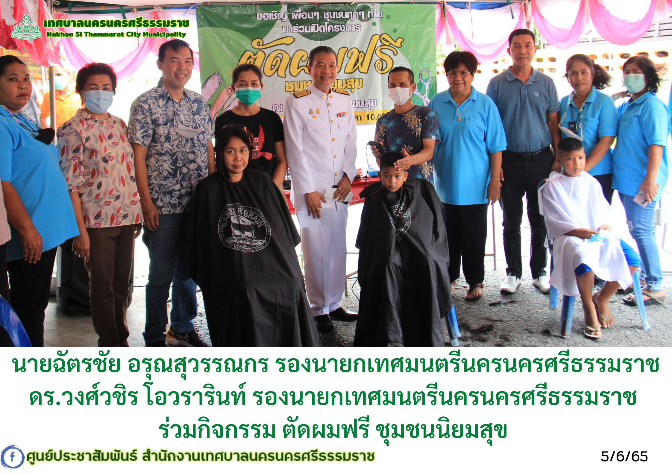 วันอาทิตย์ ที่ 5 มิถุนายน 2565 เวลา 10.30 น. นายฉัตรชัย อรุณสุวรรณกร รองนายกเทศมนตรีนครนครศรีธรรมราช พร้อมด้วย ดร.วงศ์วชิร โอวรารินท์ รองนายกเทศมนตรีนครนครศรีธรรมราช สมาชิกสภาเทศบาลนครนครศรีธรรมราช เขต 3 ร่วมกิจกรรม ตัดผมฟรี ชุมชนนิยมสุข |