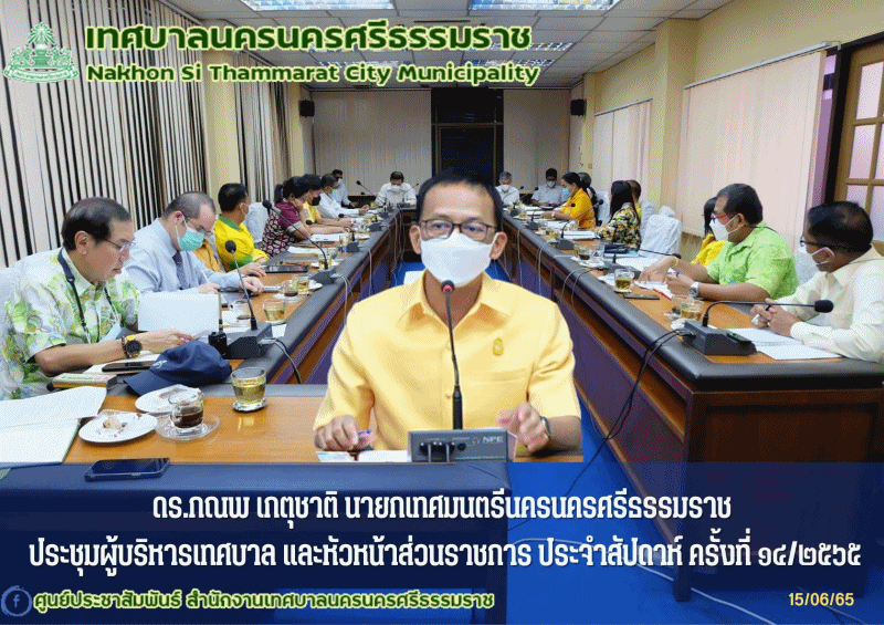 ดร.กณพ เกตุชาติ นายกเทศมนตรีนครนครศรีธรรมราช ประชุมผู้บริหารเทศบาล และหัวหน้าส่วนราชการ ประจำสัปดาห์ ครั้งที่ 14/2565 |