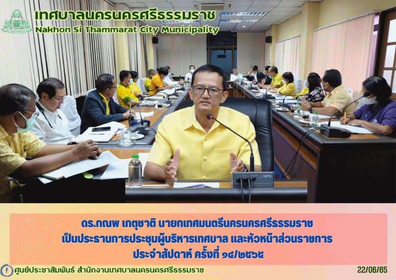 ดร.กณพ เกตุชาติ นายกเทศมนตรีนครนครศรีธรรมราช ประชุมผู้บริหารเทศบาล และหัวหน้าส่วนราชการ ประจำสัปดาห์ ครั้งที่ 14/2565 |