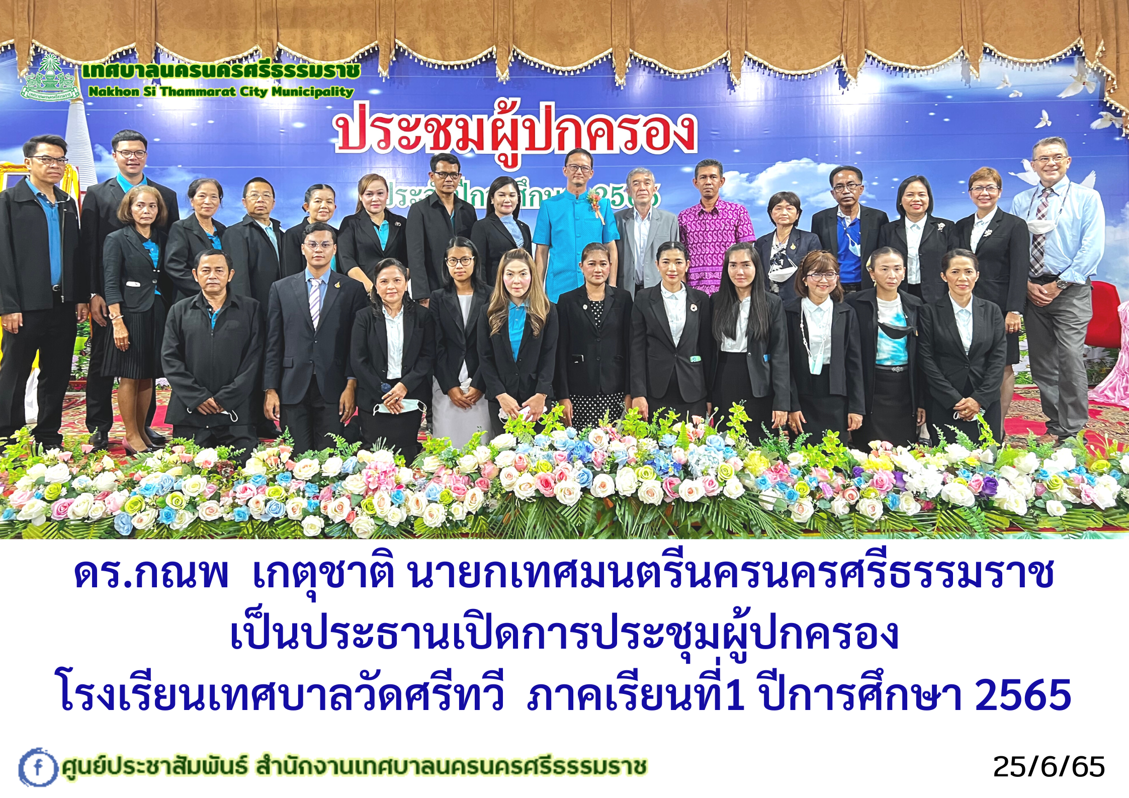 ดร.กณพ เกตุชาตินายกเทศมนตรีนครนครศรีธรรมราช เป็นประธานเปิดการประชุมผู้ปกครอง โรงเรียนเทศบาลวัดศรีทวี ภาคเรียนที่1 ปีการศึกษา 2565 |