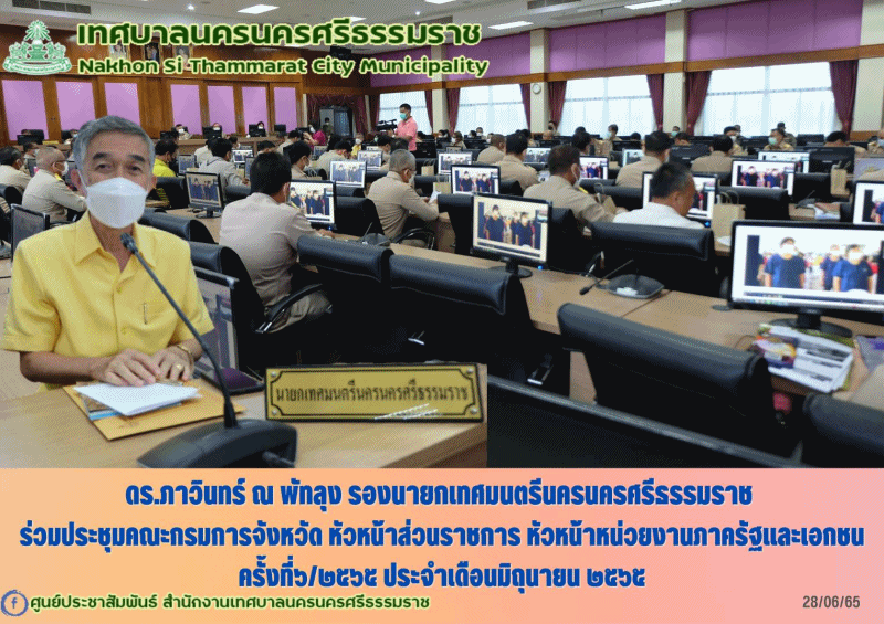 ดร.ภาวินทร์ ณ พัทลุง รองนายกเทศมนตรีนครนครศรีธรรมราช ร่วมประชุมคณะกรมการจังหวัด หัวหน้าส่วนราชการ หัวหน้าหน่วยงานภาครัฐและเอกชน ครั้งที่ ๖/๒๕๖๕ ประจำเดือนมิถุนายน ๒๕๖๕ |