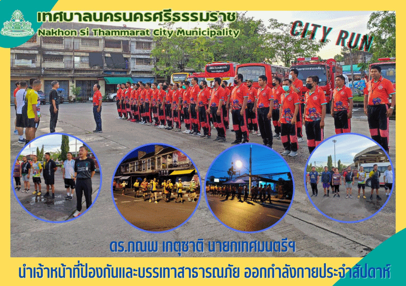 ดร กณพ เกตุชาติ นายกเทศฒนตรีนครนครศรีธรรมราช นำเจ้าหน้าที่ป้องกันและบรรเทาสาธารณภัย ออกกำลังกาย ประจำสัปดาห์ " CITY RUN " |