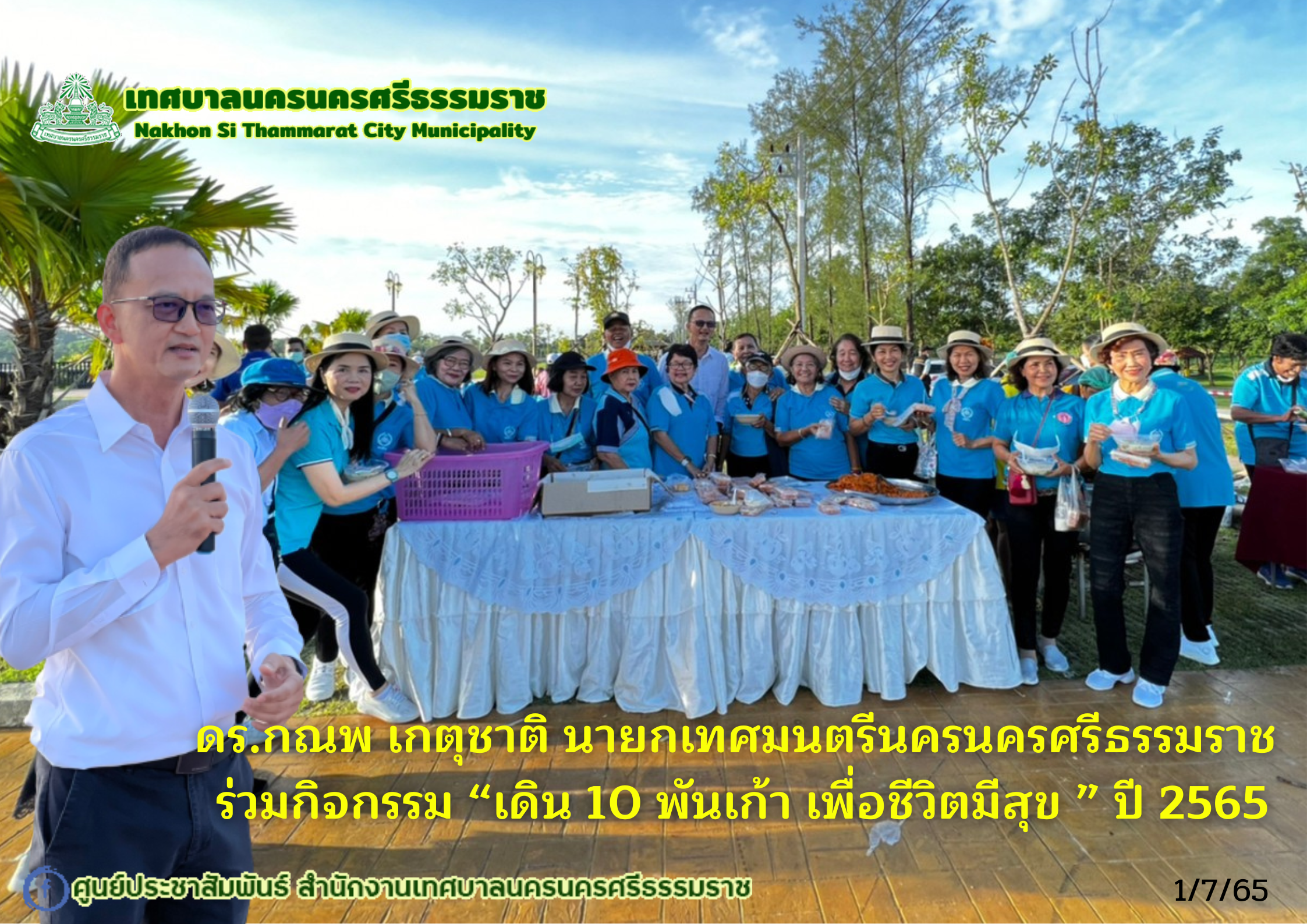 ดร.กณพ เกตุชาติ นายกเทศมนตรีนครนครศรีธรรมราช ร่วมกิจกรรม “เดิน 10 พันเก้า เพื่อชีวิตมีสุข ” ปี 2565 |