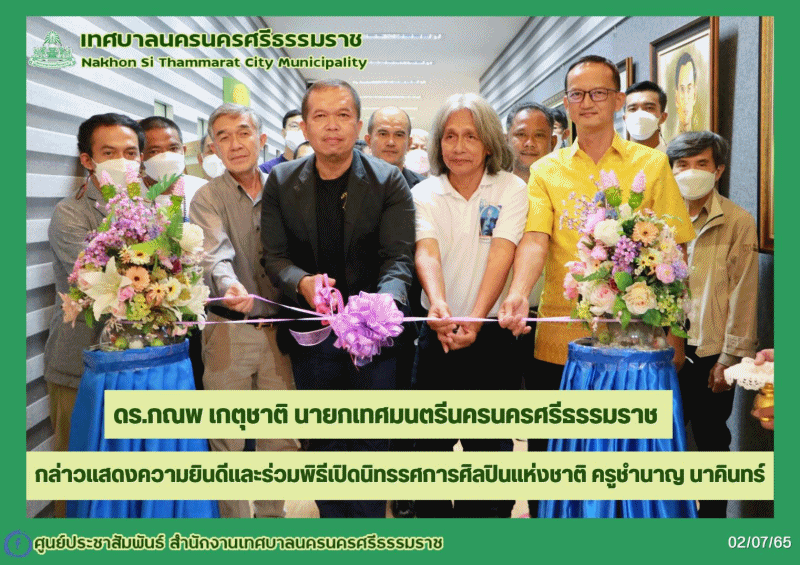 ดร.กณพ เกตุชาติ นายกเทศมนตรีนครนครศรีธรรมราช กล่าวแสดงความยินดีและร่วมพิธีเปิดนิทรรศการศิลปินแห่งชาติ ครูชำนาญ นาคินทร์ |