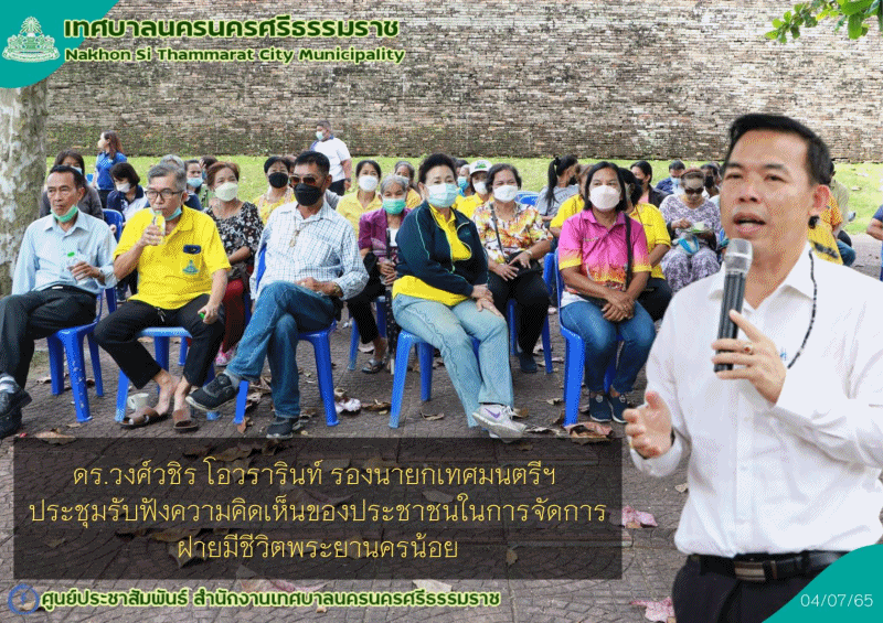 ดร.วงศ์วชิร โอวรารินท์ รองนายกเทศมนตรีนครนครศรีธรรมราช ประชุมรับฟังความคิดเห็นของประชาชนในการจัดการฝายมีชีวิตพระยานครน้อย |